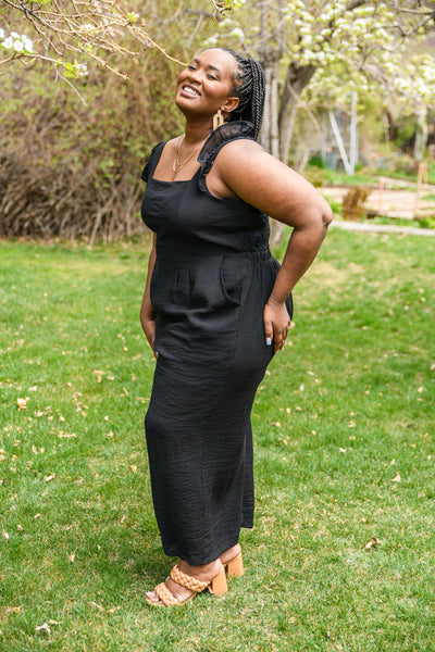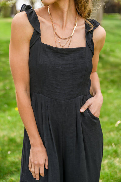 Attend your next event looking chic as ever in the Dropping In Jumpsuit! This amazing jumpsuit features a sleeveless cut with ruffle detail, side seam pockets, and wide leg silhouette. All these details will make you feel dainty and girly, we promise you're going to be obsessed!