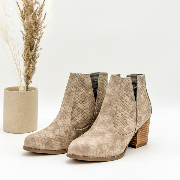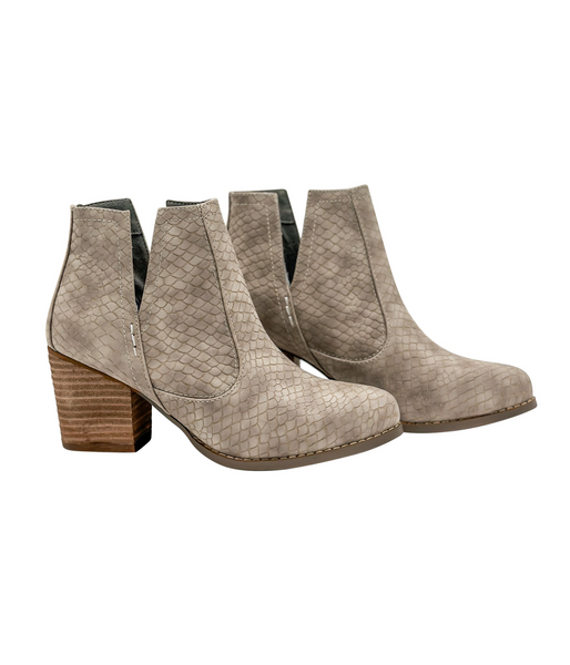 Our Tarim bootie has been a favorite time and time again! A taupe grey upper with a microfiber touch.