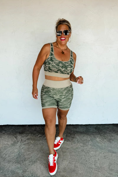 This matching set features a seamless scoop back and front bra and high-waisted biker shorts, ultra-stretchy, sculpting two tone, knit/rib fabric. Designed for both comfort and style, the set offers a supportive fit that moves with you, whether you’re hitting the gym or running errands, this set is perfection!.