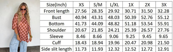 Cloud soft and so so stretchy! This bold checker top features an oversized fit with side slits. Matches perfectly with our bold block checker pants. Wear it as a set or alone with leggings or biker shorts!    The perfect way to add a "pop" to any outfit!