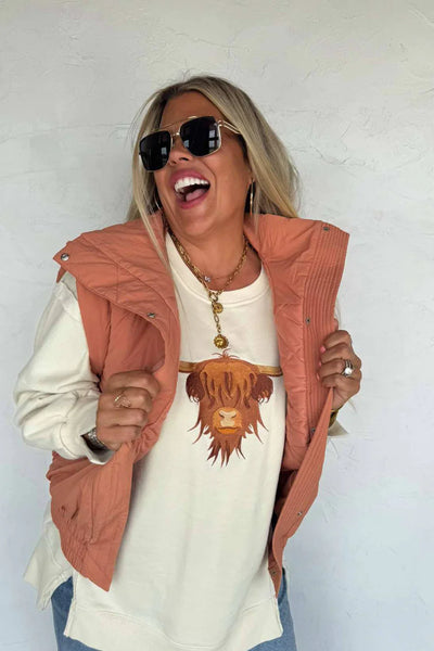 With its bold embroidered highland cow front and center the western charm trend is here with this one!!