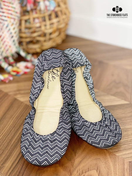 Intricate detail on these gorgeous shoes. Black Suede base showcasing a white chevron pattern made up of tiny dots. Don’t miss this classic print.