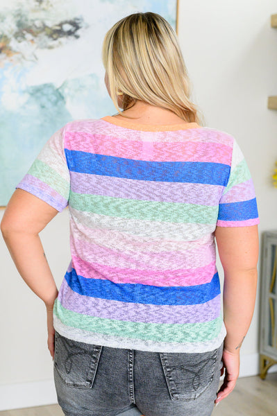 Discover the perfect balance of style and comfort with our Another Variable Striped Top! Made with a lightweight and stretchy fabric, this top features heavy burnout design and faux buttons for added flair. Don't miss out on this must-have addition to your wardrobe.
