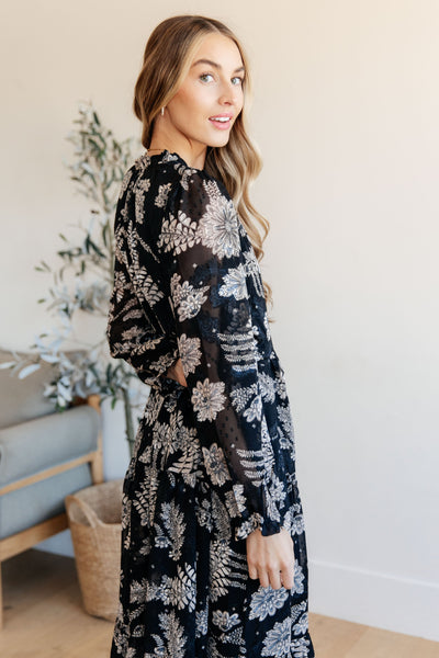 With functional front buttons and a fully lined sheer sleeve, our Come Take My Hand Floral Dress is both stylish and practical. The functional key hole tie adds a unique touch to the textured blouse material, while the tiered bottom adds a fun and flirty element. Get ready to turn heads in this dress!