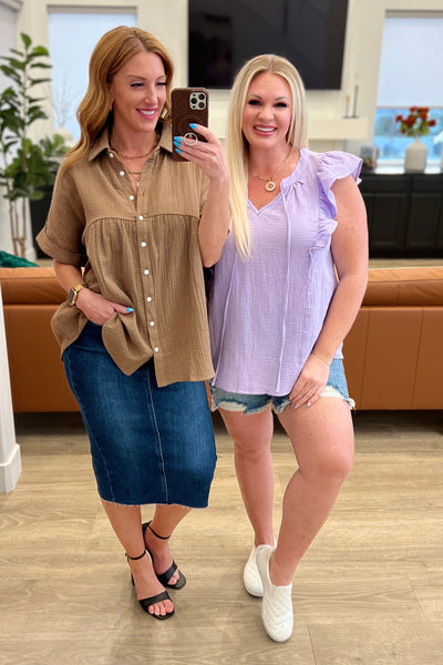 Gauze Keyhole Neckline Flutter Sleeve Blouse in Lavender