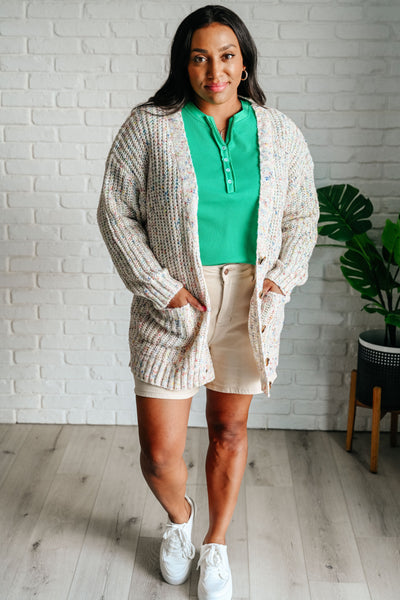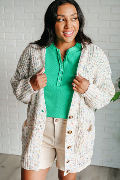 Stay warm and stylish in our Slipping Through My Fingers Sweater Knit Cardigan! The banded, ribbed neckline and sleeve cuffs create a cozy fit, while functional front buttons and patch pockets add convenience. Crafted from a soft sweater knit with subtle multi-colored flecks, this cardigan is adaptable to any season.