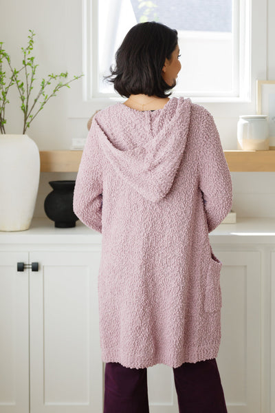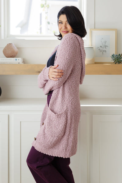 Wrap yourself in the warmth and comfort of this Soft Wisteria Hooded Cardigan! Crafted from a soft and luxurious boucle knit, this cardigan features a hooded design, button closure, front pockets, and an oversized fit for a look that's both chic and cozy. Invoke the softness of the wisteria flower and treat yourself today!