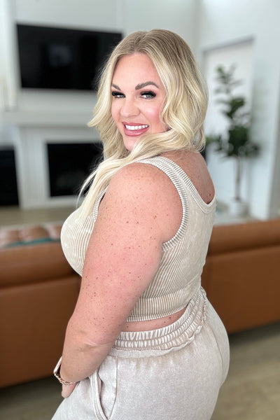 Stone Washed Ribbed Seamless Top In Ash Mocha