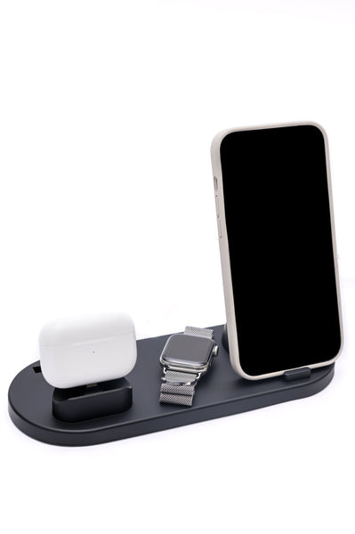 Experience the ultimate convenience with The Place To Be Wireless Charging Station in Black! This sleek charging station is designed to meet all your charging needs. With four dedicated charging spots for your phone, iPod, AirPods, and Apple Watch, this station is the perfect hub for your essential devices. Embrace the future of charging in style.