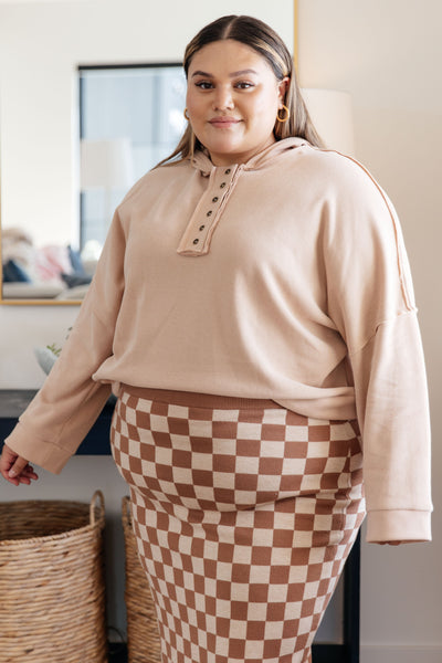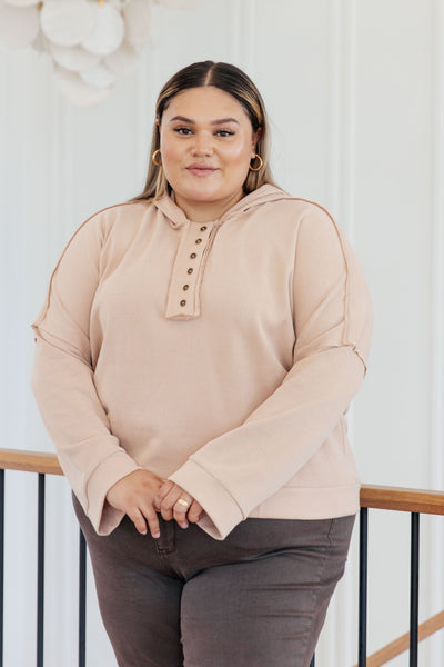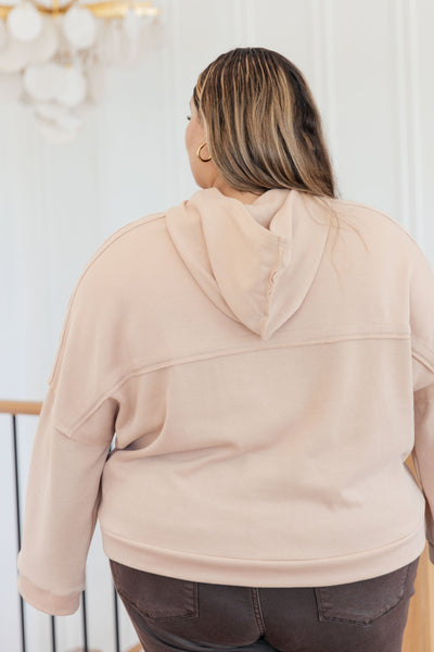 Stay cozy and stylish in the Throwback Heartthrob Hoodie in Beige. This button-up layer features a generous hood, exposed seams, and cuffed edges to keep you in comfort and style. Perfect for layering and keeping warm, you'll love the look and feel of this throwback layer!