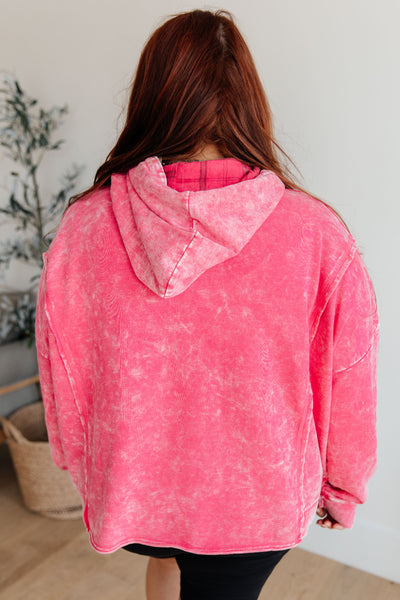 You'll more than get by in style in our With A Little Help From My Friends Hoodie! Featuring a functional drawstring, exposed seams, and a drop shoulder for a trendy touch. Stretchy fabric ensures maximum comfort, and with its mineral wash and playful plaid lined hood, you'll believe in love at first sight!
