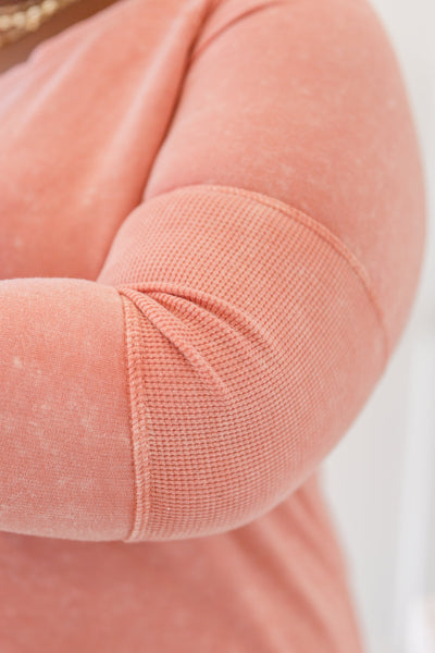 You'll find yourself always reaching for the Fun Beginnings Raglan Top In Dusty Mauve! It's cute, it's functional and it's on trend. An oversized bodice boasts a round neckline with decorative exposed seam detail and mini side slits. The long sleeves feature a drop shoulder detail with the cutest contrasting waffle fabric at the cuff and elbow. The washed effect creates a vintage inspired look you'll love!