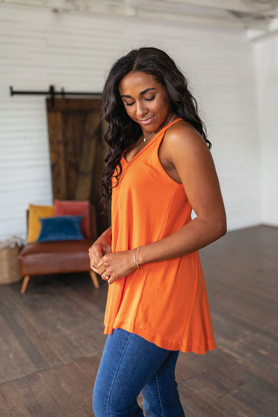 The In The Swing of Things Swing Tank is an ideal addition to your wardrobe. Its ribbed jersey fabric, halter neckline, and godet inset provide a comfortable and stylish fit while the swing silhouette flatters any body type. Enjoy effortless sophistication with this timeless piece.