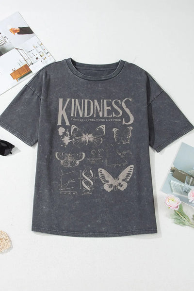 Kindness Butterflies Graphic Mineral Wash Loose Tee