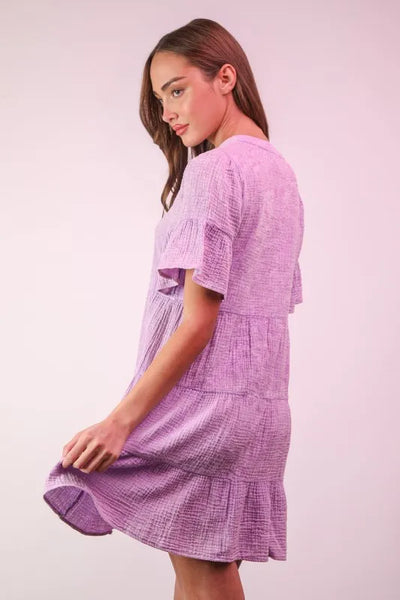 VERY J Mineral Washed Baby Bell Sleeve Woven Mini Dress